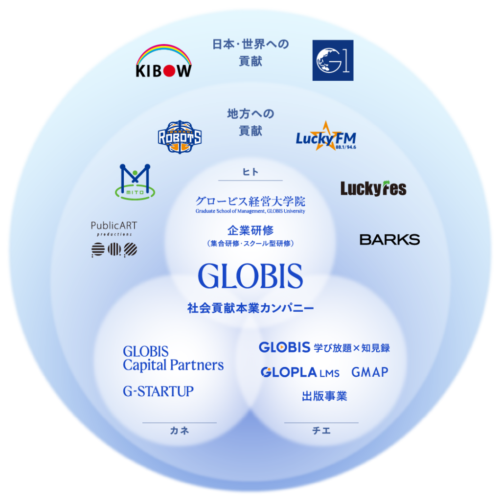 グロービスは、社会・組織・個人の可能性を拓き、ビジネスを通した社会貢献に取り組む「社会貢献本業カンパニー」です。事業を通じた社会貢献に加えて、水戸・茨城の地方創生、日本・世界を良くする活動を推進しています。